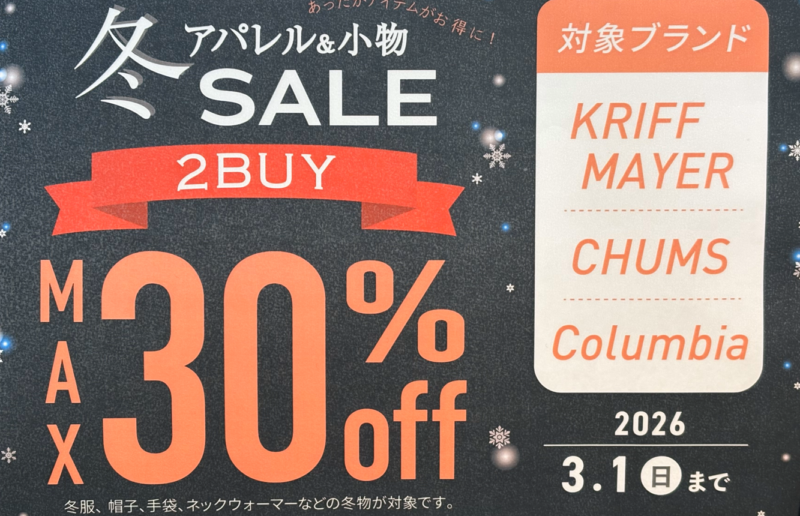 冬物アパレル&小物 2BUYセールMAX30%OFFのご案内