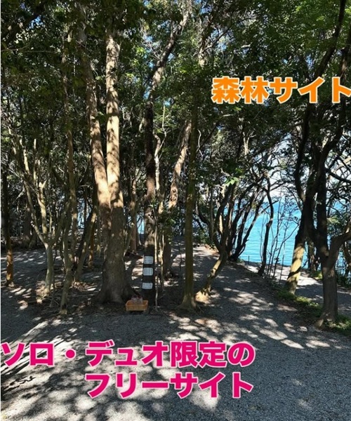 サイトはプライベートサイト、海側区画オートサイト、区画オートサイト、森林サイト、森林オートサイトがあり、ファミリーや、グループ、ペット連れの方やソロの方など様々なスタイルのキャンプを楽しんで頂けます!